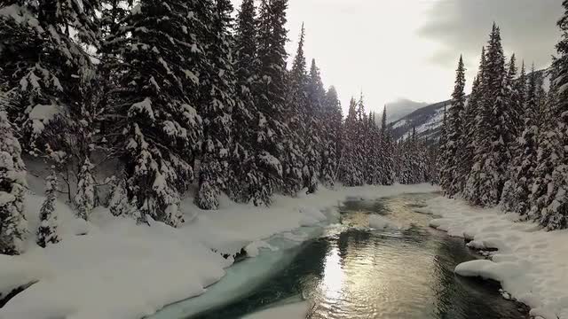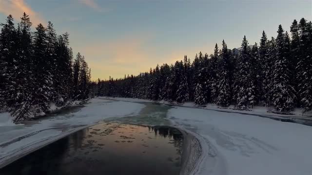 This shot was captured in Alberta Canada during sunrise. It was shot over a river with fog blanketing the landscape.