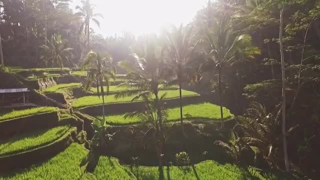 Aerial of rice terraces on Bali, Indonesia. FHD footage.