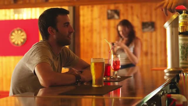 537510 - Two shot of cute couple on date outside cafe