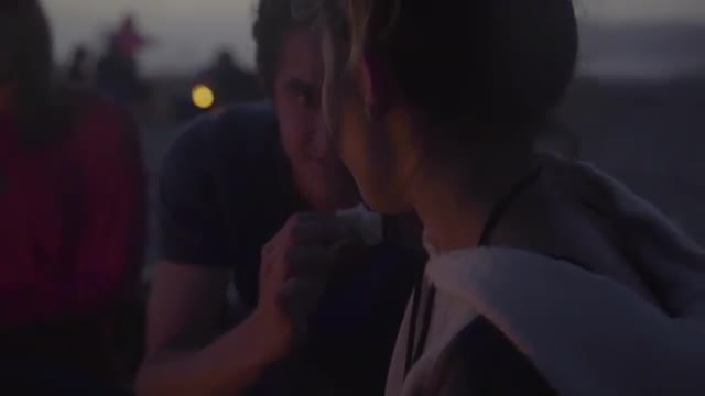 > Boy and girl dance in surf