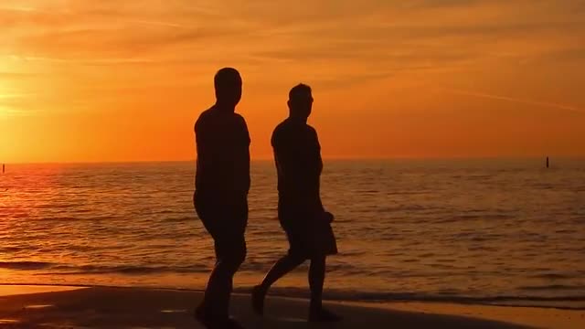 214457 - Silhouette of People Walking Across Beach During Sunset