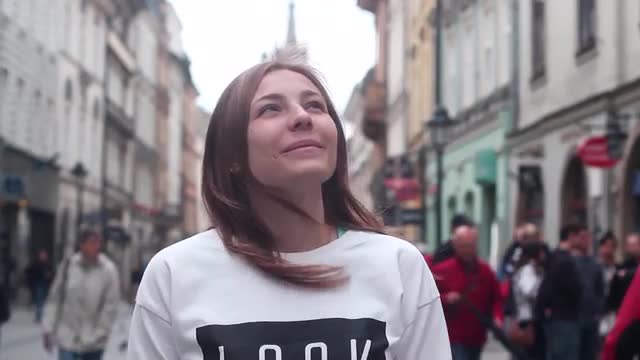Steadicam follow shot of two tourists with trolley bag walking along the pedestrian street of Stockholm, Sweden.