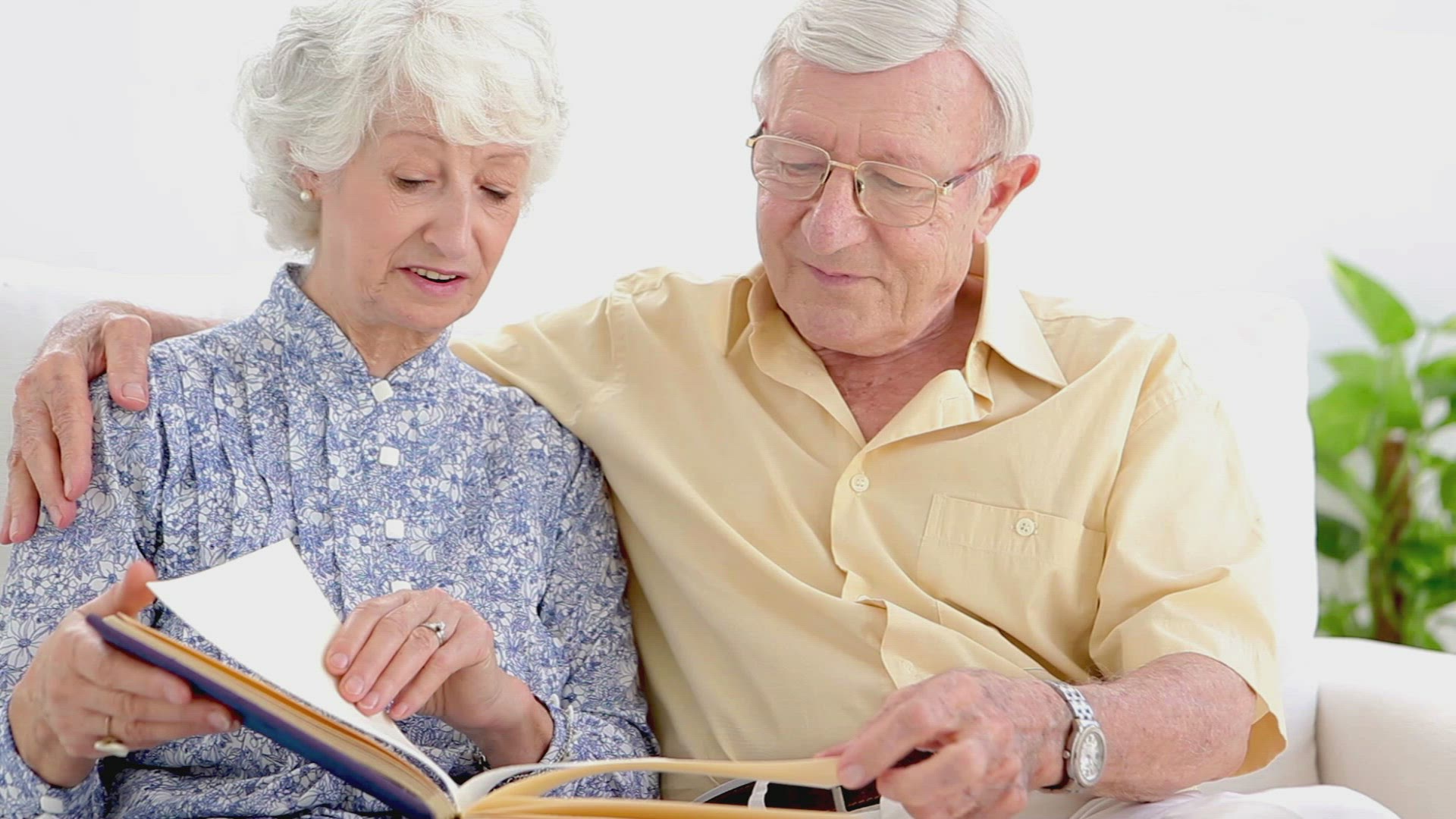 Steadicam shot of a man and woman using smart phones to take shots of an old house with tree in foreground