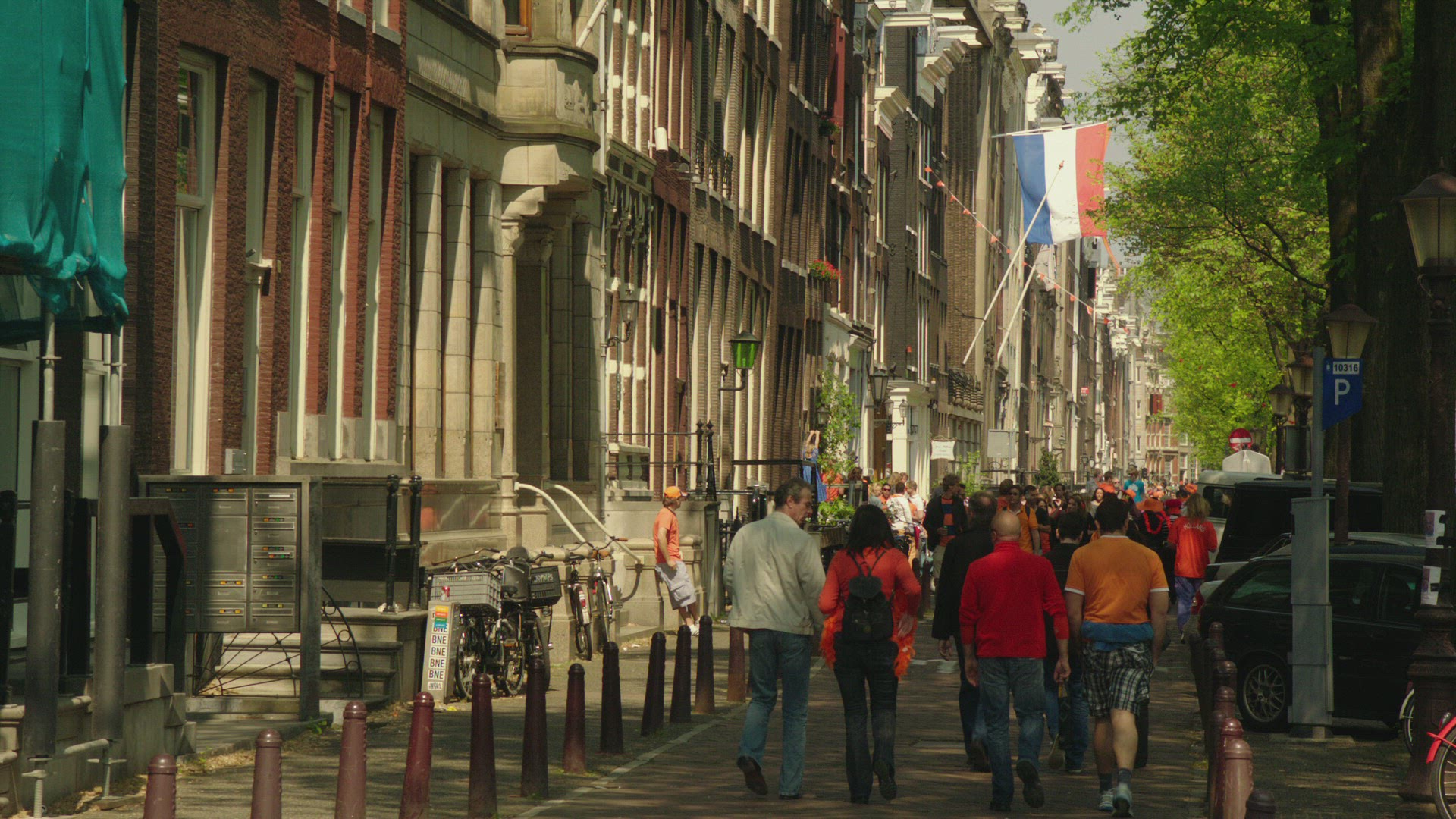 Steadicam shot of young happy tourists with pad in the city. They looking at the map on tablet PC and comparing it with local area