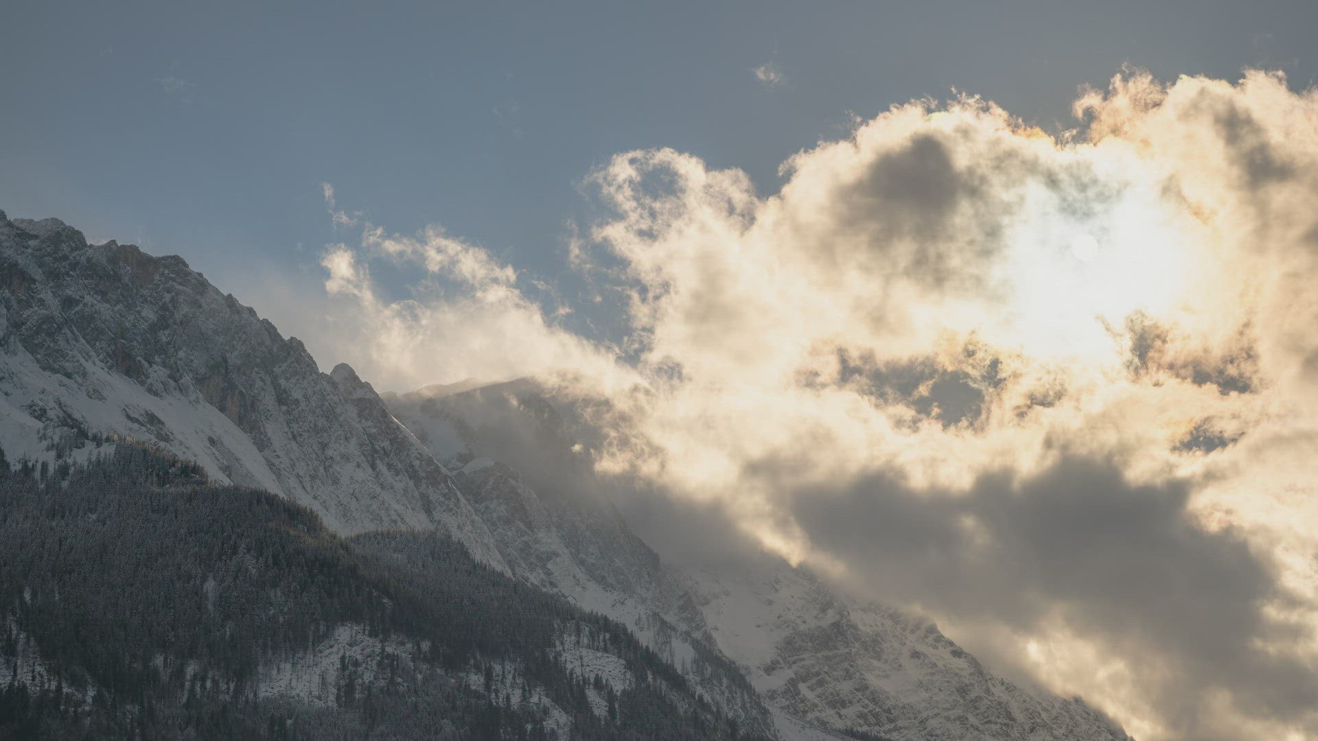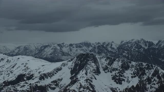 Top down look at snowy trees on Mt. Ashland in Ashland, Oregon close to sunset.