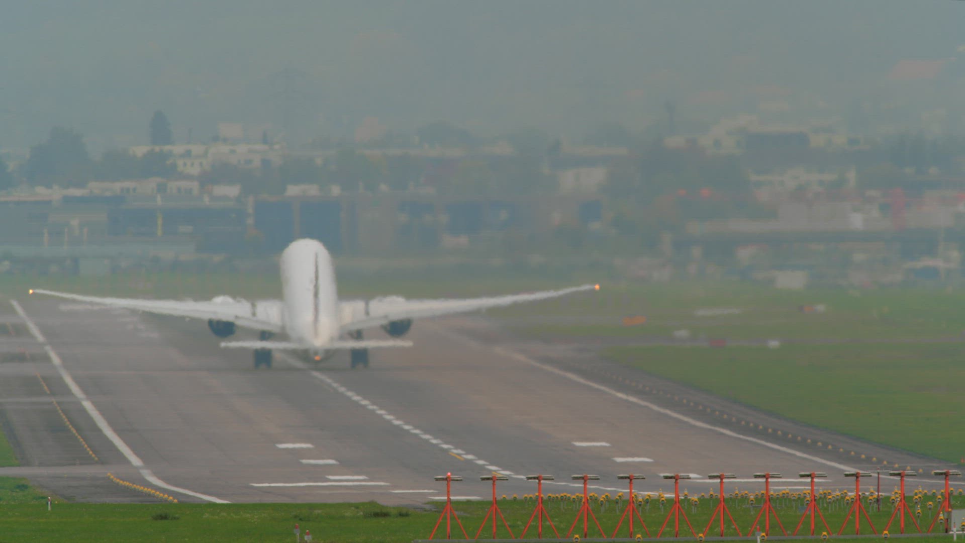 1034550 - Airliner moves on runway. Takeoff run of passenger airplane
