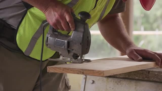 439017 - Using electric saw to cut the wood