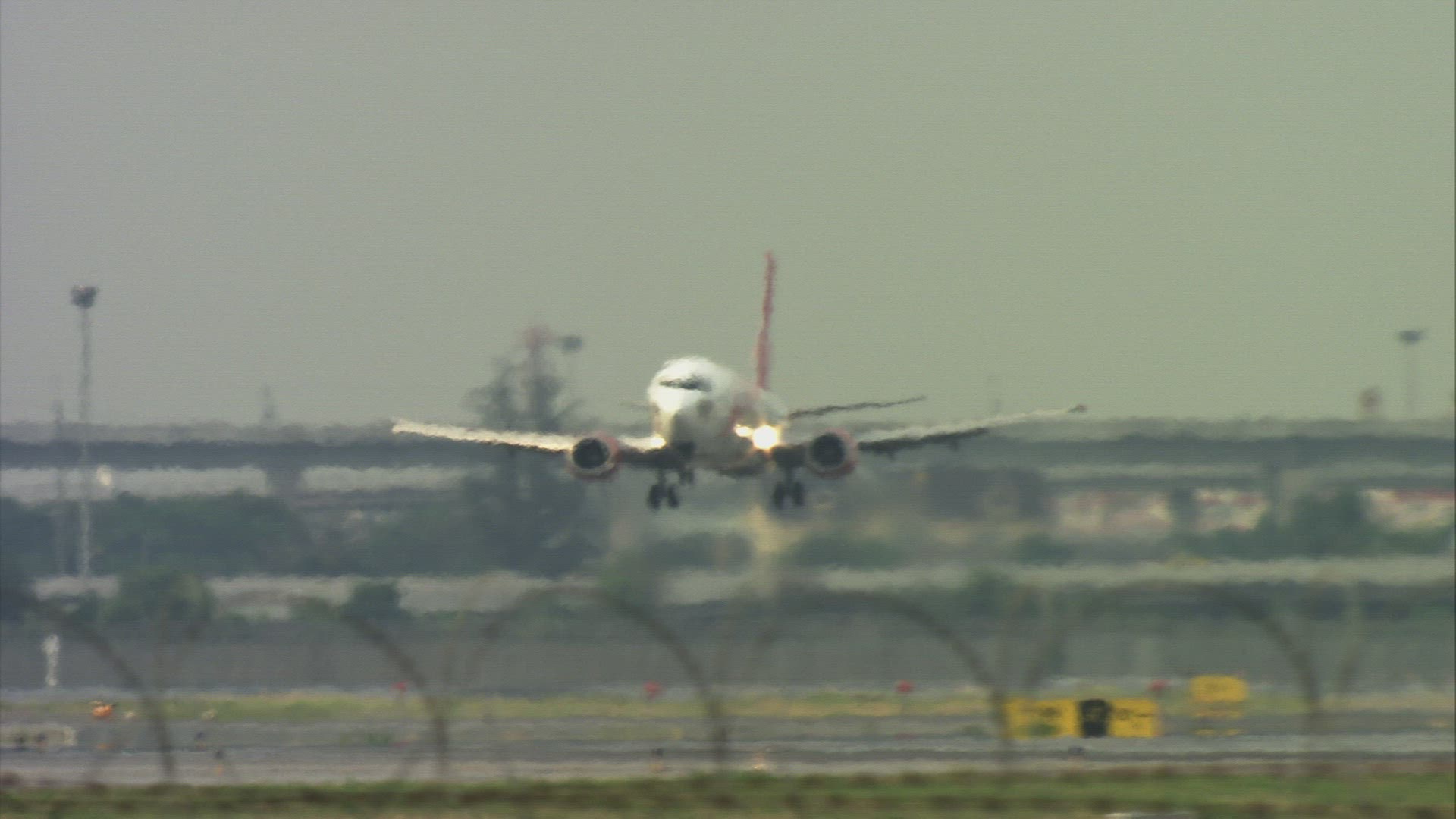 Clouds time lapse and aeroplanes taxiing to terminal at Kuala Lumpur International Airport.