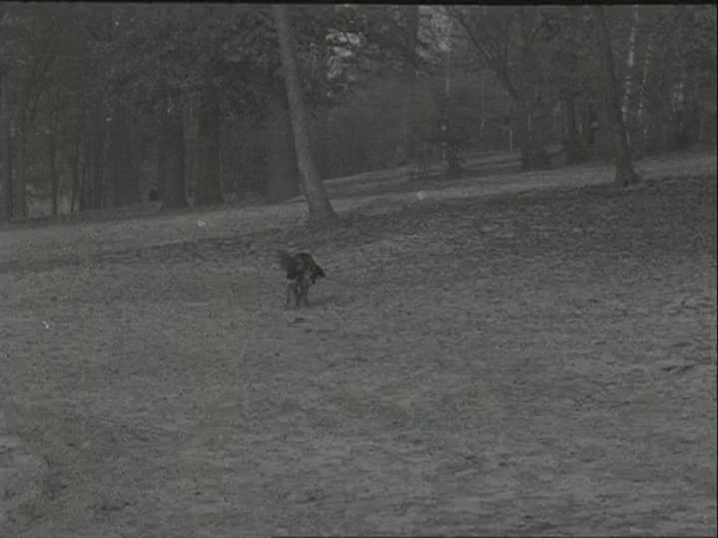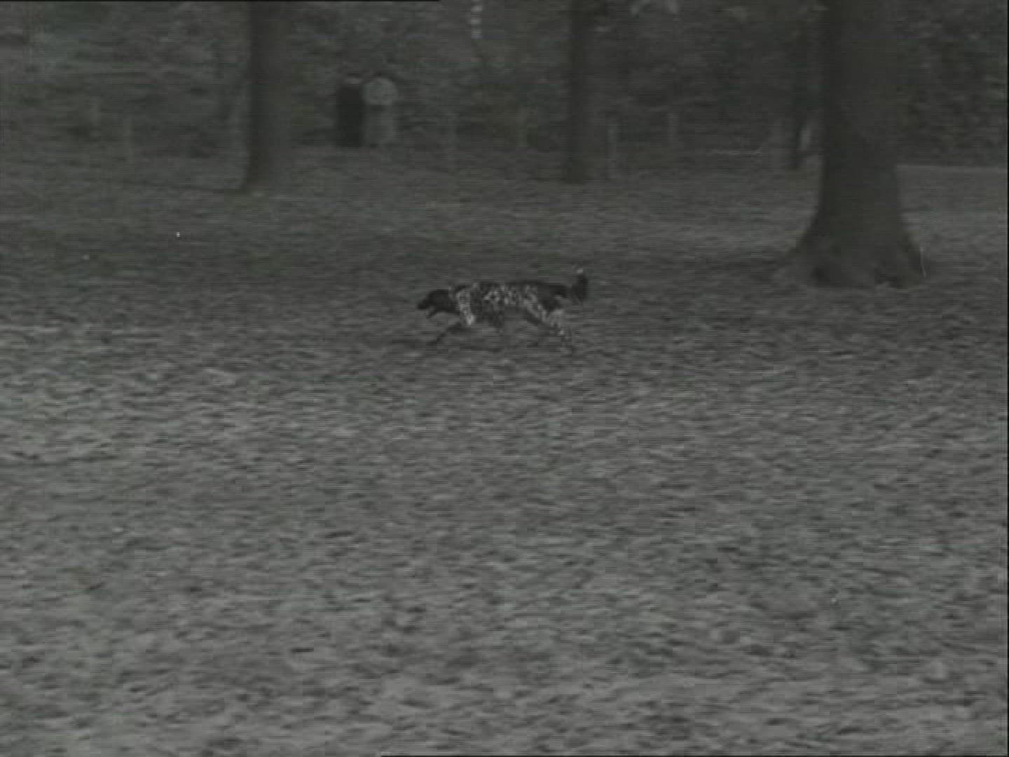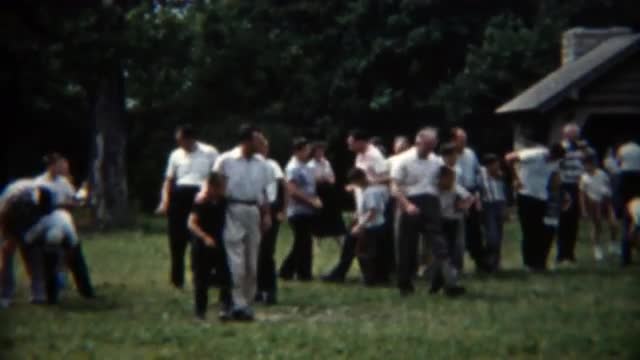 1950 children running over finish line race in Seattle race. Full race from start long shot angle
