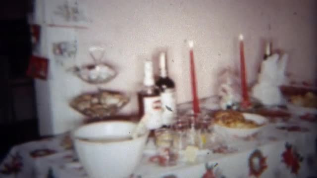> 1962: Holiday party table filled with self serve desserts and liquor bottles. BUFFALO, NEW YORK
