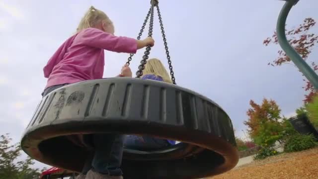 Sisters enjoy a tire swing together