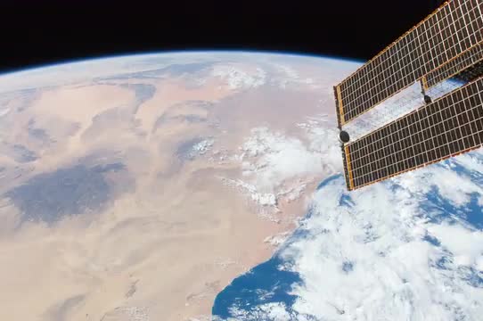 ISS flying in Earth's orbit from the South Atlantic Ocean, south of Liberia, to northern Kazakhstan. This video shows the view out of all the windows in the Cupola, and begins by looking over the Atlantic Ocean. The ISS travels east towards Africa, with the clay-colored sands of the Sahara Desert. As the ISS crosses over Africa and then over the Mediterranean Sea, the southern end of the Balkan Peninsula stands out before traveling over Eastern Europe. (av22403u)