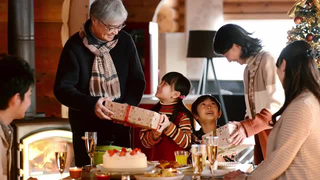 > Family talking during Christmas party