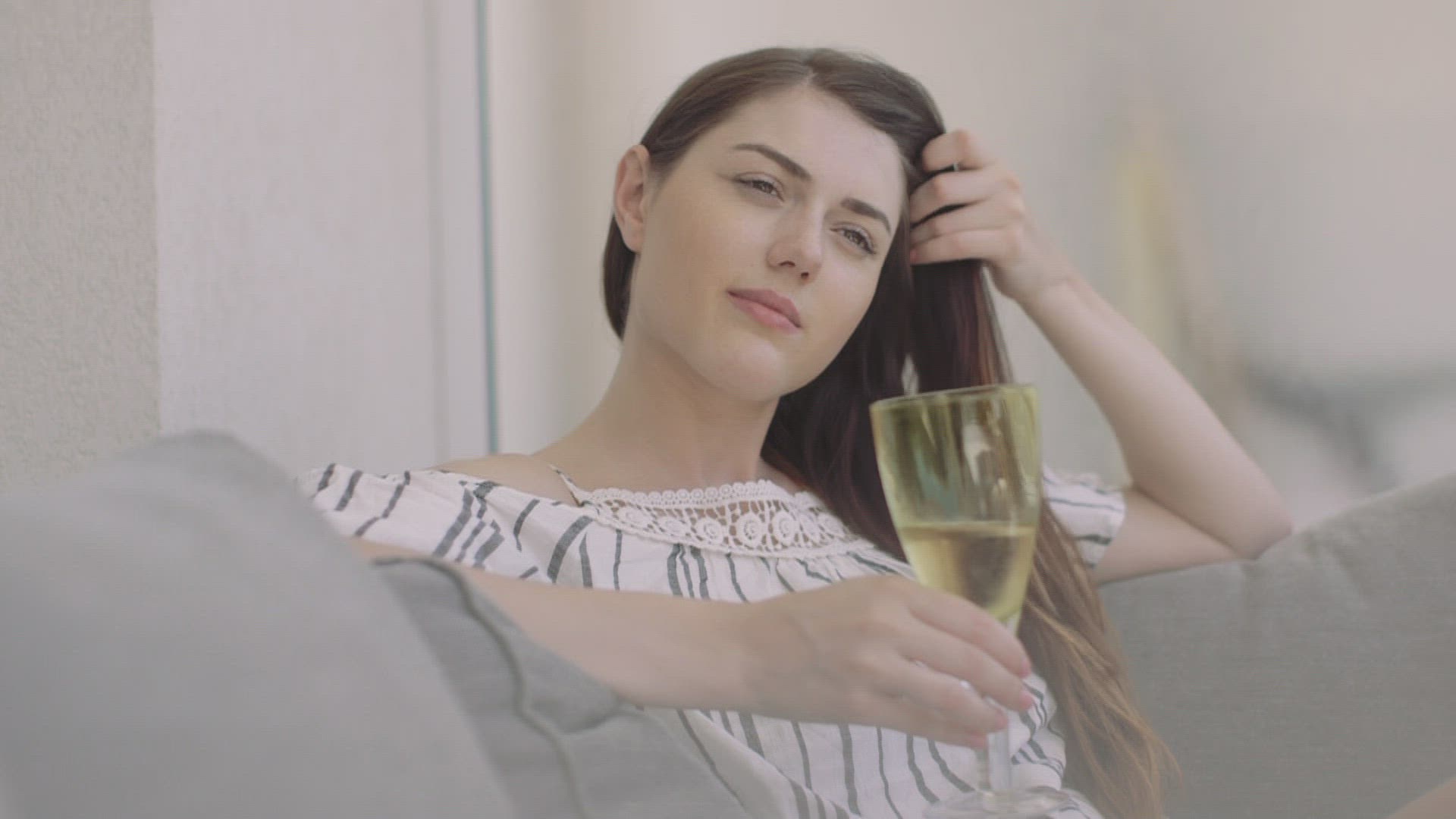 559467 - Caucasian preschooler brushing her hair on sofa
