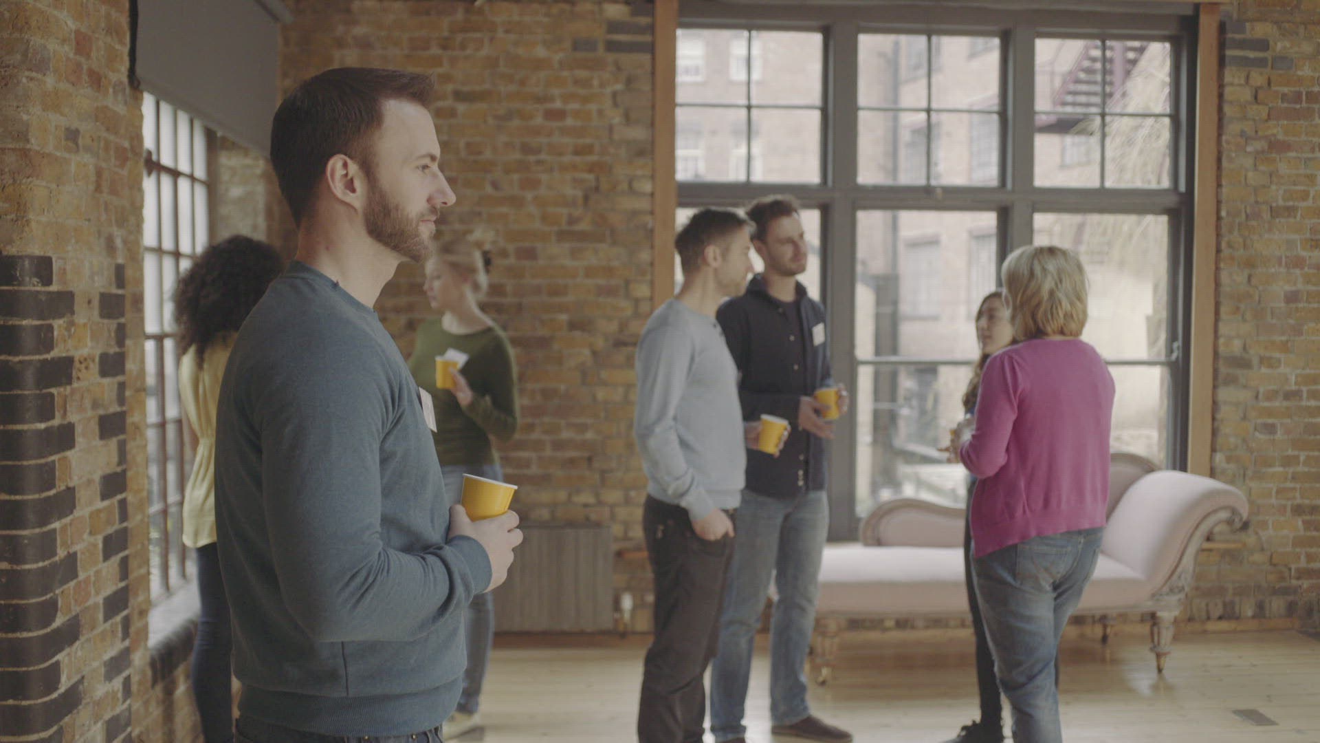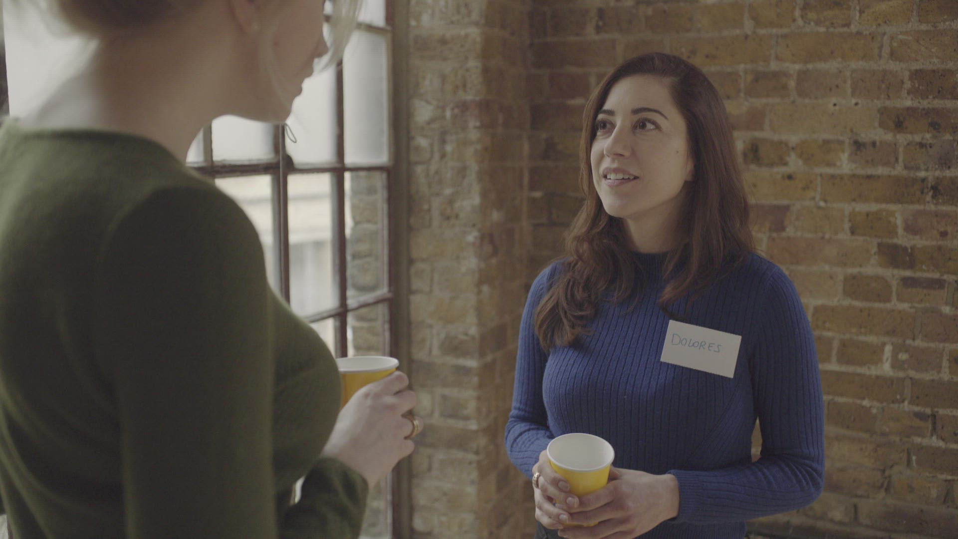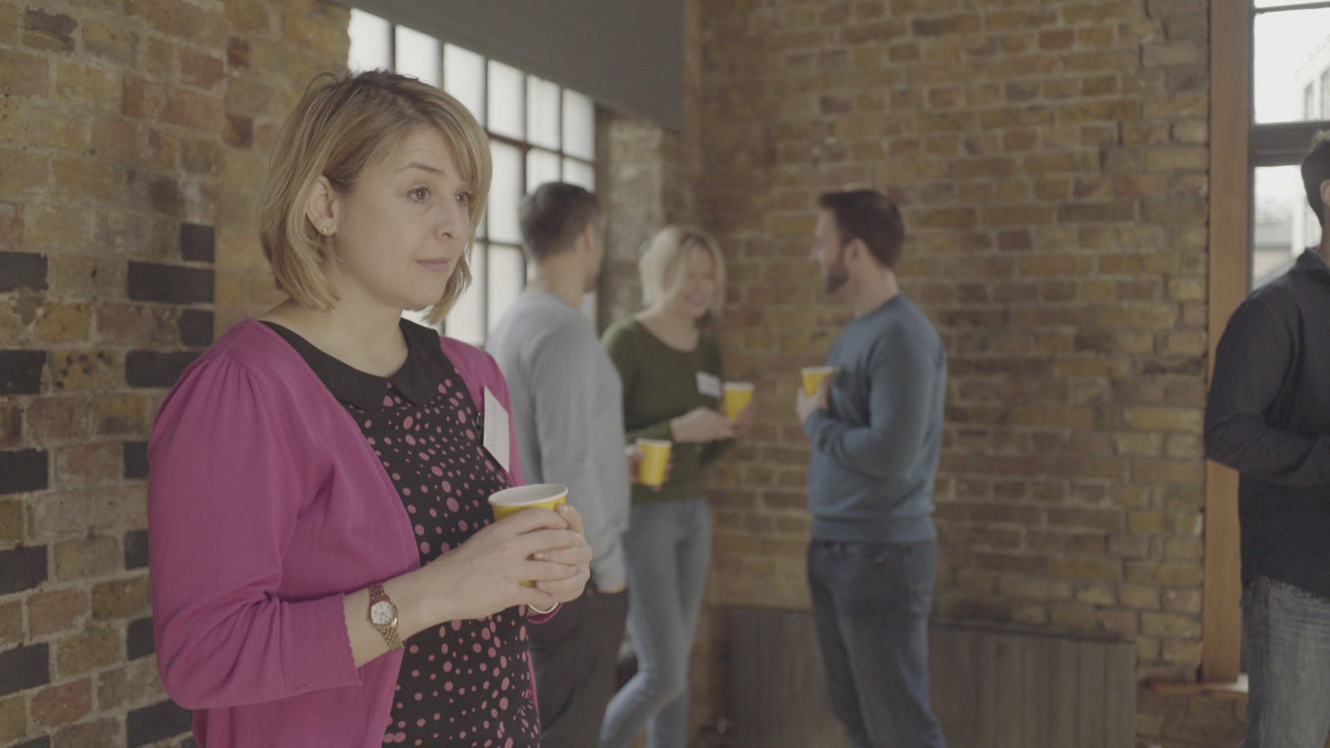 > Woman drinking coffee