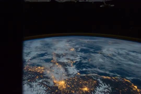 ISS flying in Earth's orbit from western Algeria to southeastern Croatia along the Adriatic Sea. This video begins looking north from northwestern Africa towards the Strait of Gibraltar and the Iberian Peninsula. In the middle of the Iberian Peninsula, Madrid, the capital and largest city of Spain, stands out brightly. As the pass continues northeast over the Mediterranean Sea, the coastline of France along with the Balearic Islands is seen. As the ISS continues to travel northeast, the northern half of Italy is seen under clouds before the pass ends over Croatia. (av21583u)