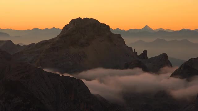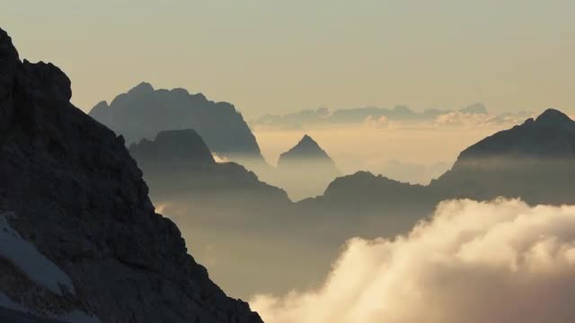 Time lapse in 4K quality showing night mountain landscape with stars or clouds in the Julian Alps region