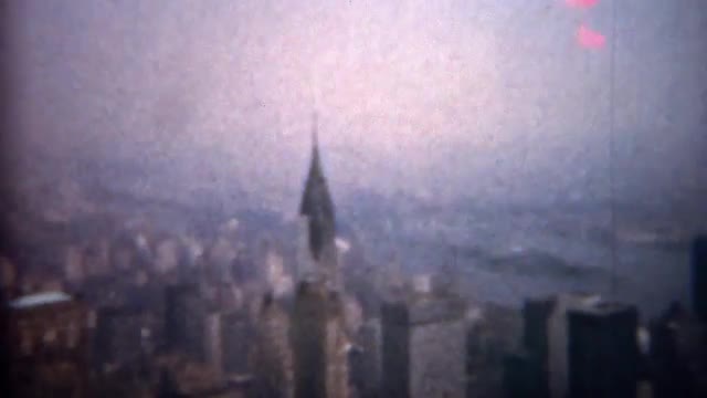 > 1961: Rooftop view of a dirty smoggy Manhattan city.