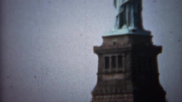 > 1961: Statue of Liberty closeup tilt up and far shot.