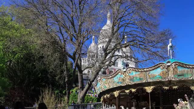 4K Cloudy day on the Basilica of the Sacred Heart of Paris