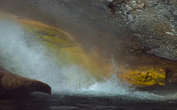 Slow motion of cascading water going into a pool at Yellowstone National Park.