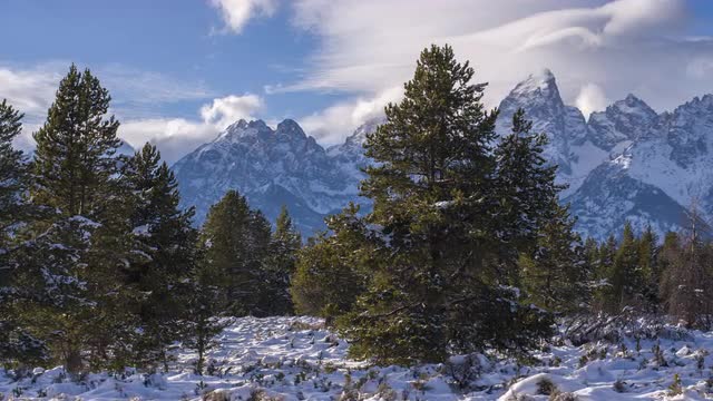 196836 - Dolly In Winter Along Trees With Tetons In Background