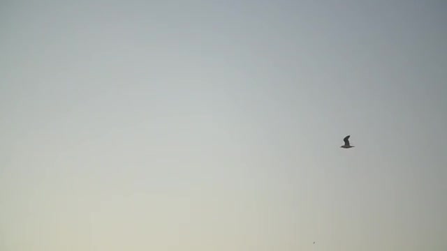 A seagull in flight on a warm evening