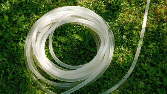 Sprinkler in the garden. Portable sprinkler spins, spraying water on the plants on a hot summer day. (av17953c)