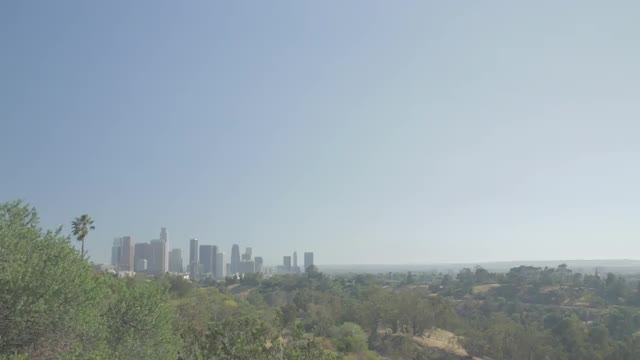 Downtown Los Angeles on a sunny summer day. Palm tree in foreground. ProRes 422 from 5Dmkiii w/ Technicolor Picture Style. Not colored.