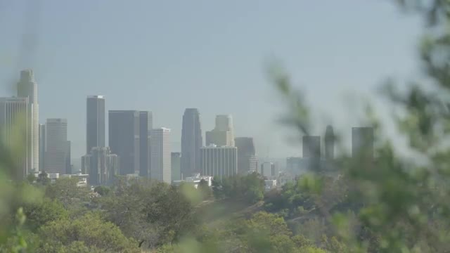 Downtown Los Angeles on a sunny summer day. bushes in foreground. ProRes 422 from 5Dmkiii w/ Technicolor Picture Style. Not colored.