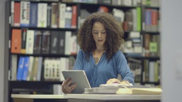 > Businesswoman checking fabric swatches with digital tablet