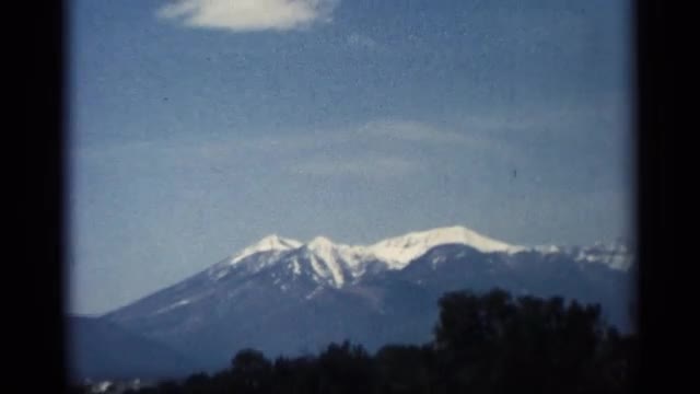 > Panning shot across snowy mountain range in Arizona