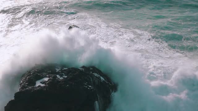 Slow Motion Ocean Waves Breaking on Rocks, storm weather