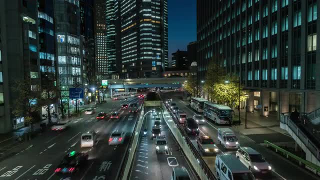958834 - Timelapse bird's eye shot of heavy traffic at night, Tokyo, Japan