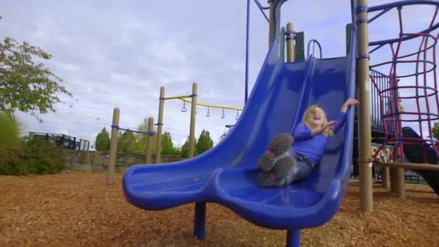 469503 - Adorable girl climbs slide