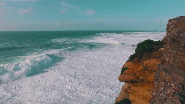 > Big Ocean Waves Breaking on Rock, storm weather