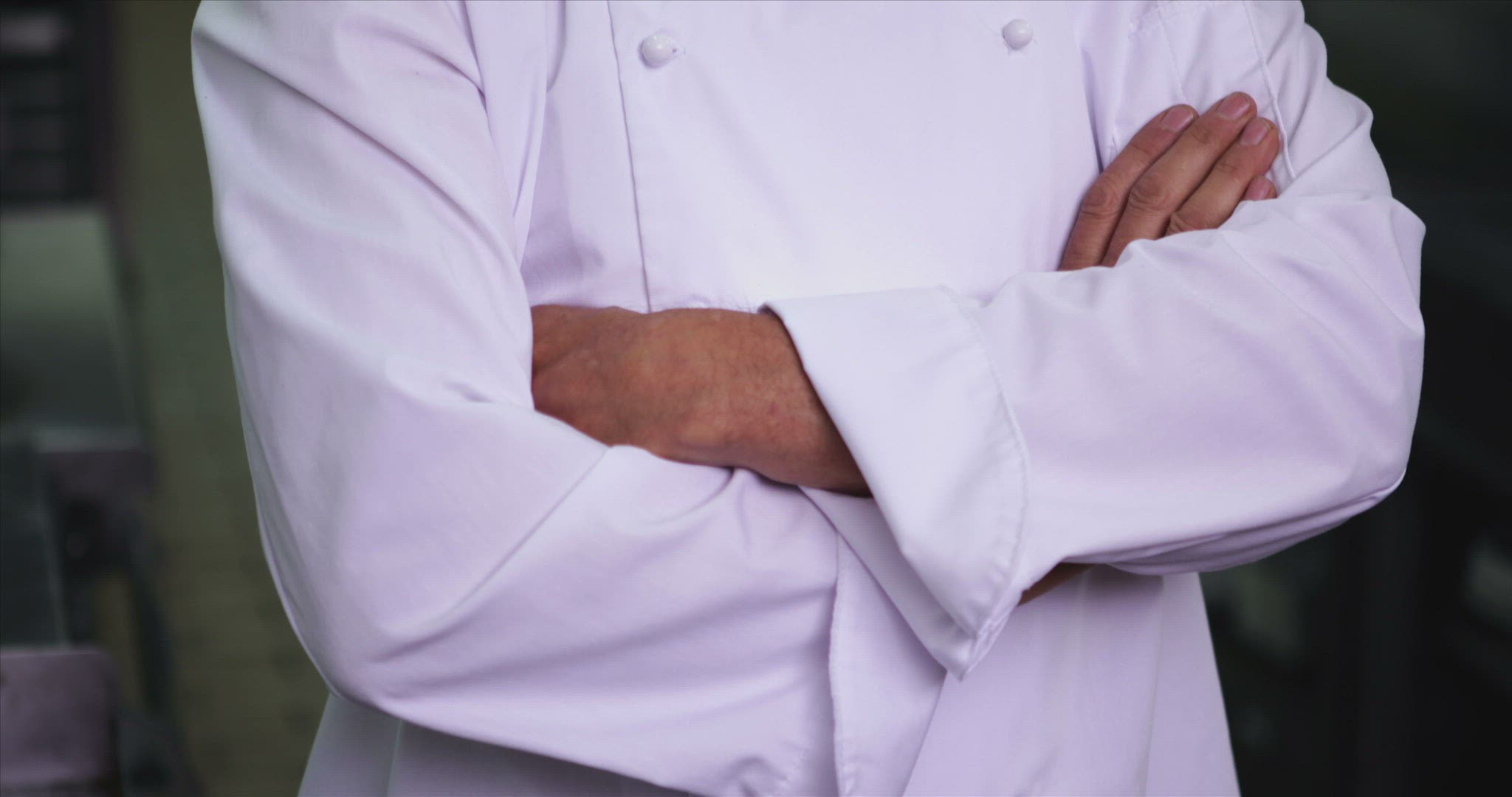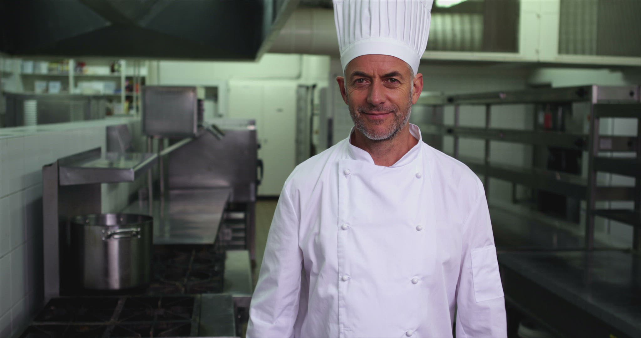 473499 - Professional chef in a commercial kitchen in a restaurant or hotel is using a tablet computer.