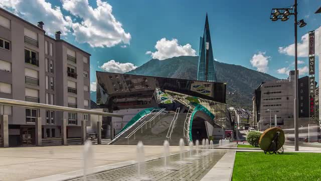 andorralavellabridgerivervaliradesigneuropemodernskytravellandscapearchitectureviewbuildinghousecityurbanconstructioneuropeantowncityscapecapitaldistricthi-techmountainspyreneesoutdoorvacationroadstreetvehiclewaterfronttimelapsehyperlapsemotionUltraHD4Kbluecloudslong shuttertourismla valiragran valirasummer