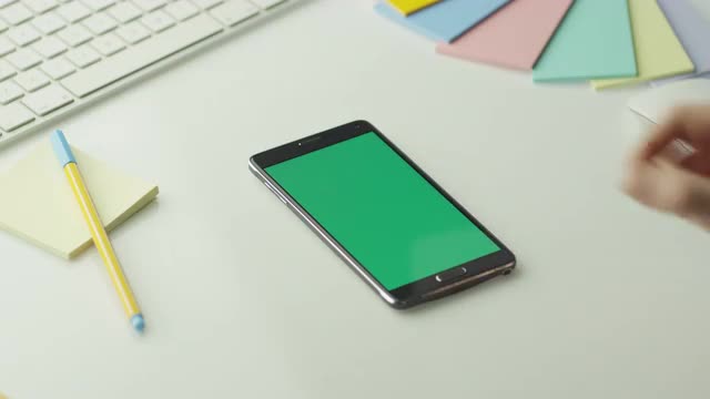 Designer is Using Android Phone with Green Screen in Portrait Mode.
