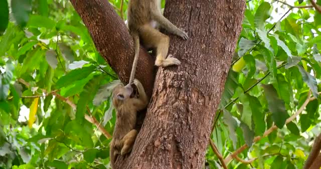Young Baboons play in tree