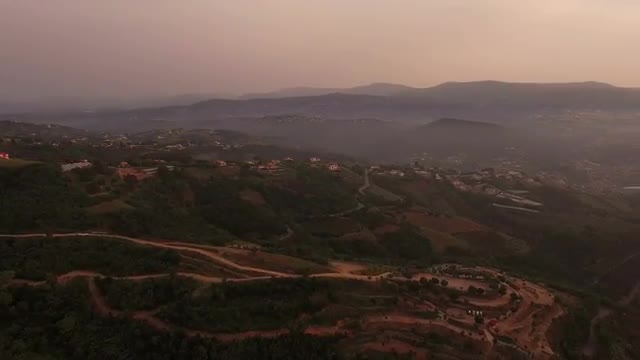 v2 Flying backwards over hillsides.
