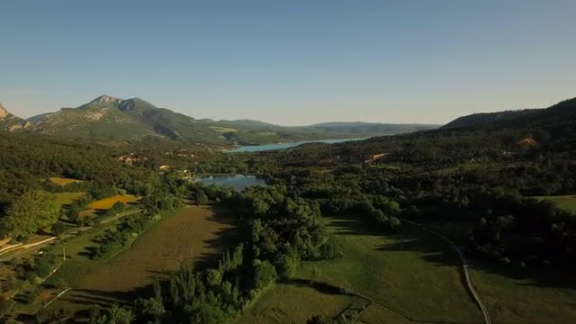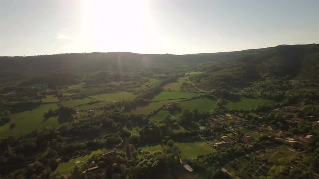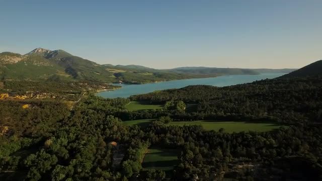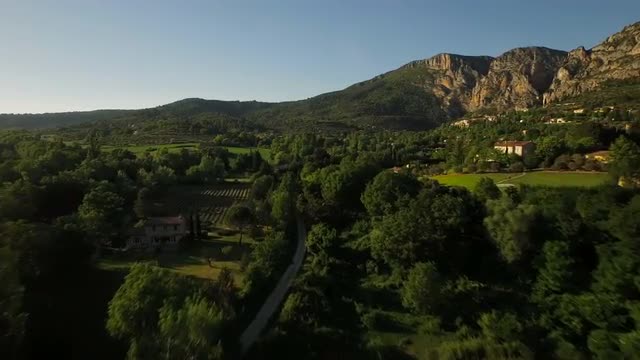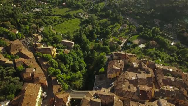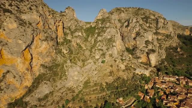 v30 Flying low over Moustiers town panning right.
