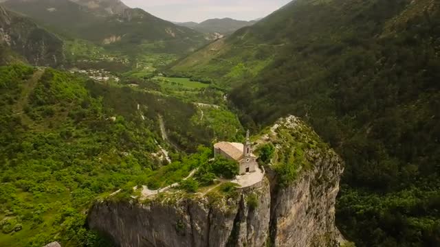 v14 Flying around Chapelle Notre dame du Roc above Castellane town.