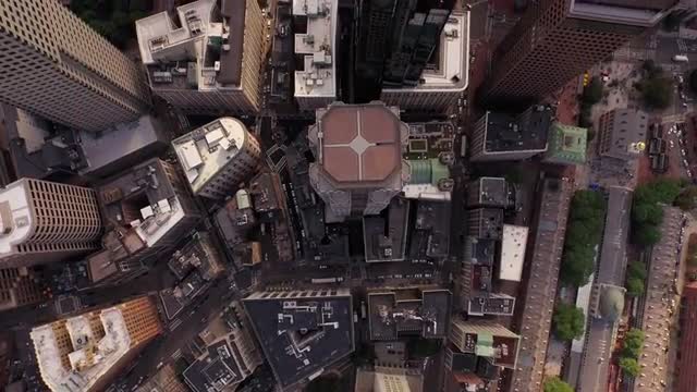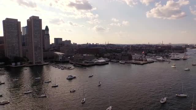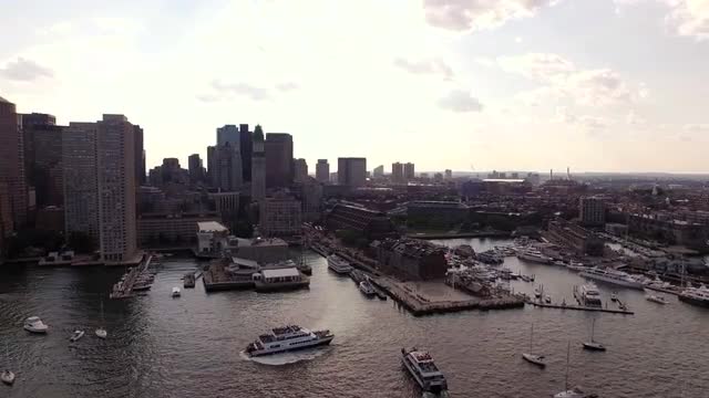 v124 Flying low over North End panning right with cityscape views.