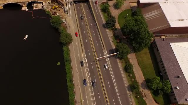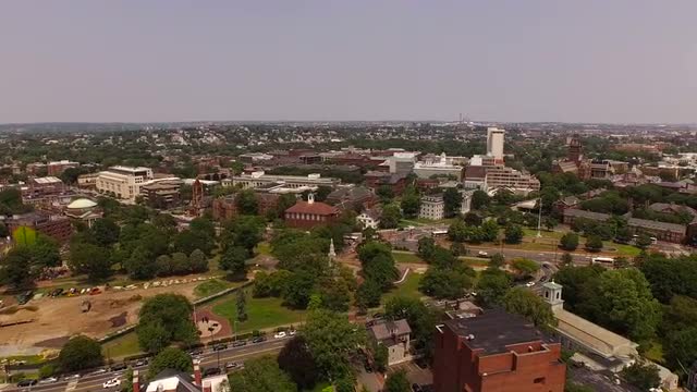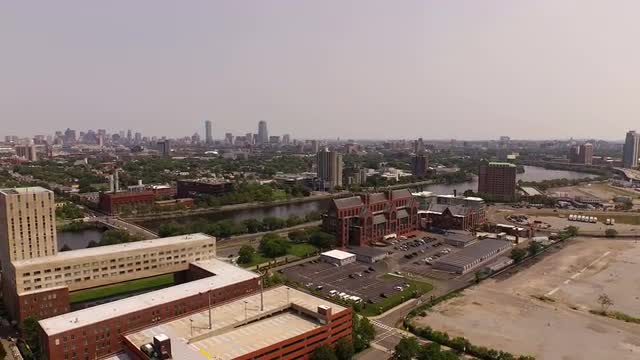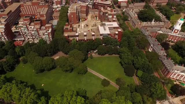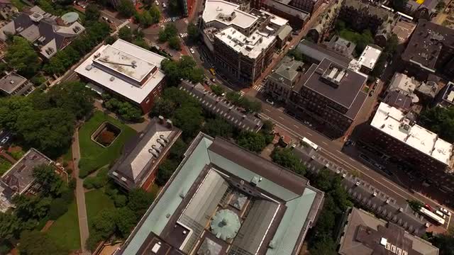 v111 Flying low looking down over Harvard campus.