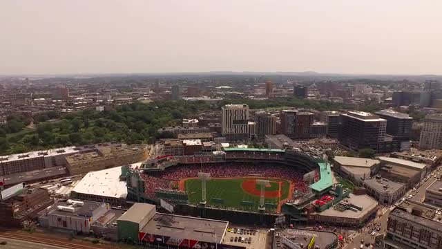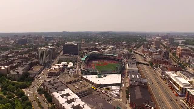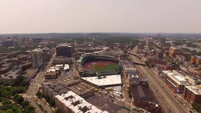 v94 Flying over Longwood area panning right with multiple campus and cityscape views.