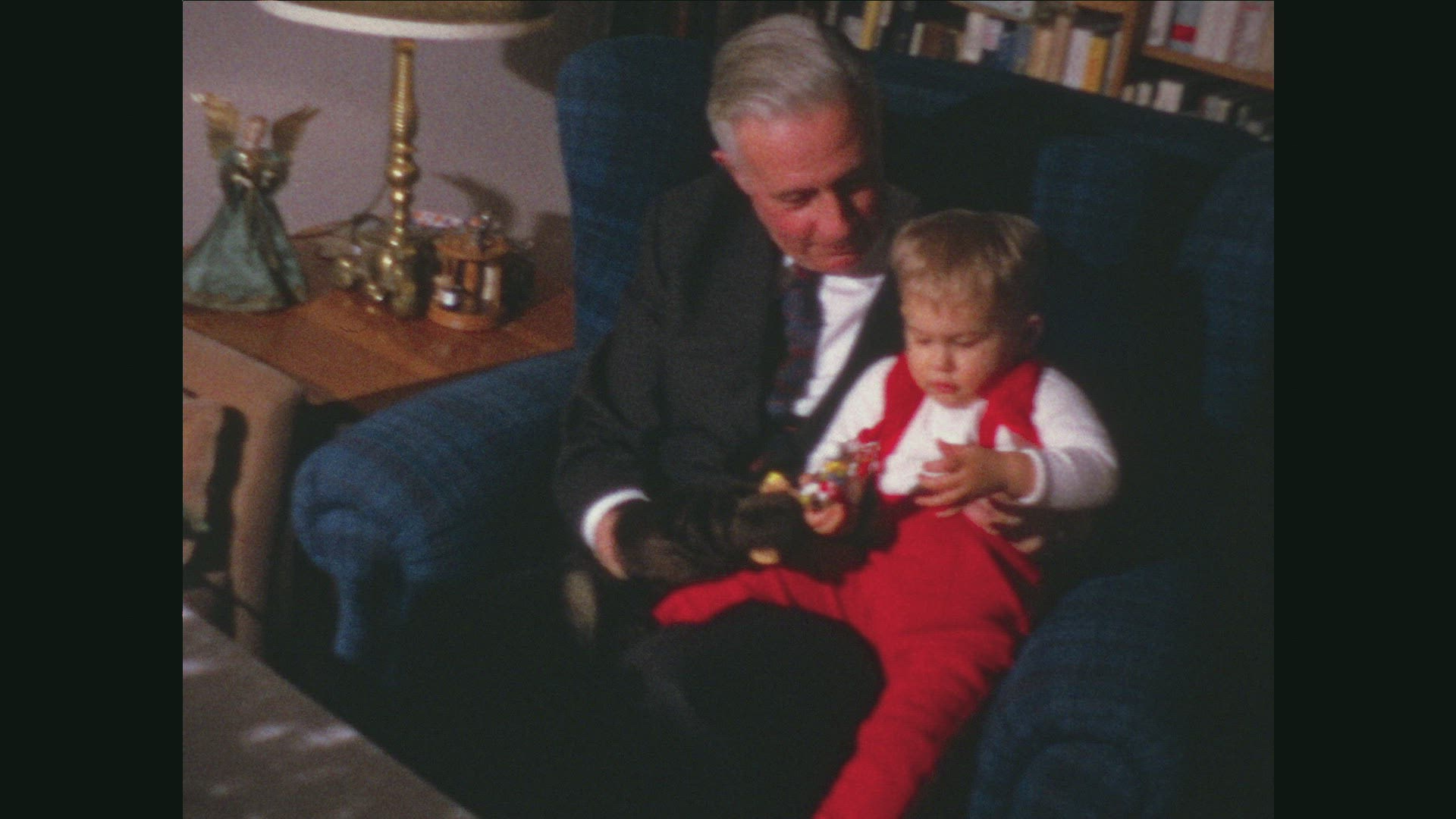 > 1974: Grandpa plays with blow up Easter bunny dolls and kids.
