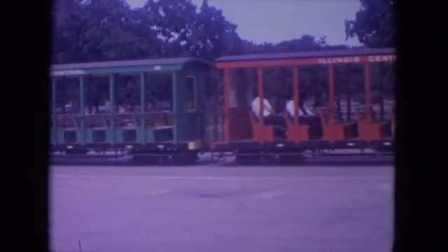 1972: People riding the zoo people mover motorized open air car bus.