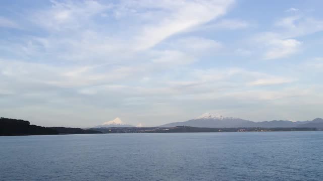 Static shot of lake and mountains