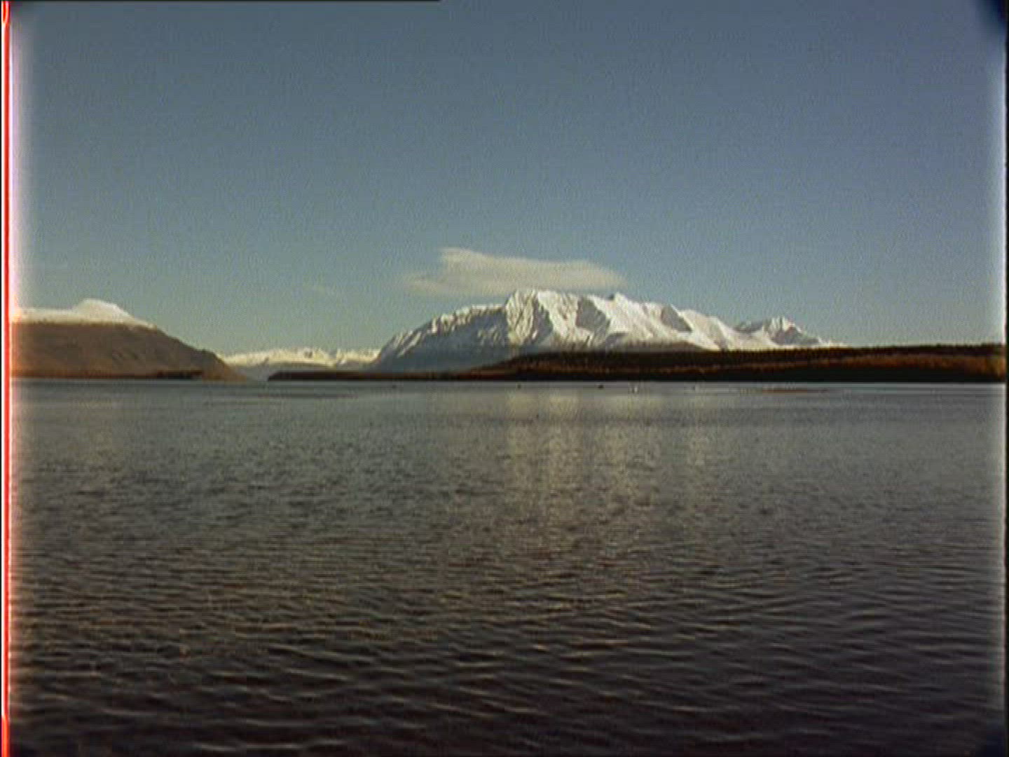 Wide shot of lake and mountains